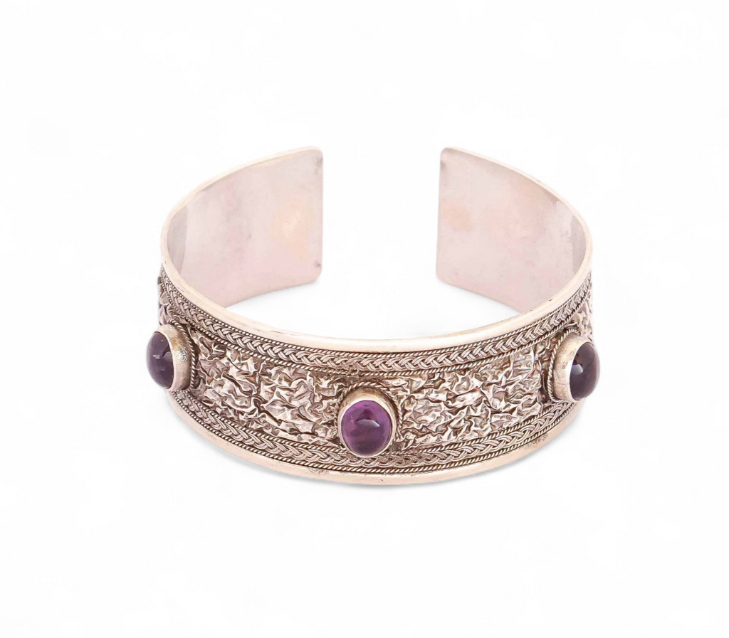 USD $110.00Design : Simple Design Material : 925 Sterling Silver Stone : Amethyst Size : 7mm SKU: BR0334AMT Weight 14.8 g Dimensions 70 × 60 mmQuick View {"id":8934591201518,"title":"Amethyst Sterling Silver Cuff","handle":"amethyst-sterling-silver-cuff","description":"\u003cp\u003eDesign : Simple Design\u003c\/p\u003e\n\u003cp\u003eMaterial : 925 Sterling Silver\u003c\/p\u003e\n\u003cp\u003eStone : Amethyst\u003c\/p\u003e\n\u003cp\u003eSize : 7mm\u003c\/p\u003e\n\u003cp\u003e\u003cspan\u003eSKU: \u003c\/span\u003e\u003cspan class=\"sku\"\u003eBR0334AMT\u003c\/span\u003e\u003c\/p\u003e\n\u003ctable class=\"woocommerce-product-attributes shop_attributes\"\u003e\n\u003ctbody\u003e\n\u003ctr class=\"woocommerce-product-attributes-item woocommerce-product-attributes-item--weight\"\u003e\n\u003cth class=\"woocommerce-product-attributes-item__label\"\u003eWeight\u003c\/th\u003e\n\u003ctd class=\"woocommerce-product-attributes-item__value\"\u003e14.8 g\u003c\/td\u003e\n\u003c\/tr\u003e\n\u003ctr class=\"woocommerce-product-attributes-item woocommerce-product-attributes-item--dimensions\"\u003e\n\u003cth class=\"woocommerce-product-attributes-item__label\"\u003eDimensions\u003c\/th\u003e\n\u003ctd class=\"woocommerce-product-attributes-item__value\"\u003e70 × 60 mm\u003c\/td\u003e\n\u003c\/tr\u003e\n\u003c\/tbody\u003e\n\u003c\/table\u003e","published_at":"2025-08-25T20:31:32+12:00","created_at":"2025-08-25T20:29:49+12:00","vendor":"Essentially Silver Jewelry","type":"Cuff","tags":["Cuffs","Sterling Silver"],"price":11000,"price_min":11000,"price_max":11000,"available":true,"price_varies":false,"compare_at_price":null,"compare_at_price_min":0,"compare_at_price_max":0,"compare_at_price_varies":false,"variants":[{"id":46910092050670,"title":"Default Title","option1":"Default Title","option2":null,"option3":null,"sku":"BR0334AMT","requires_shipping":true,"taxable":true,"featured_image":null,"available":true,"name":"Amethyst Sterling Silver Cuff","public_title":null,"options":["Default Title"],"price":11000,"weight":0,"compare_at_price":null,"inventory_quantity":1,"inventory_management":"shopify","inventory_policy":"deny","barcode":"","requires_selling_plan":false,"selling_plan_allocations":[]}],"images":["\/\/essentiallysilver.com\/cdn\/shop\/files\/A40EFEAE-CE60-4719-9A4A-2DFDB048D71D.png?v=1756110697"],"featured_image":"\/\/essentiallysilver.com\/cdn\/shop\/files\/A40EFEAE-CE60-4719-9A4A-2DFDB048D71D.png?v=1756110697","options":["Title"],"media":[{"alt":null,"id":36671021711598,"position":1,"preview_image":{"aspect_ratio":1.193,"height":1267,"width":1512,"src":"\/\/essentiallysilver.com\/cdn\/shop\/files\/A40EFEAE-CE60-4719-9A4A-2DFDB048D71D.png?v=1756110697"},"aspect_ratio":1.193,"height":1267,"media_type":"image","src":"\/\/essentiallysilver.com\/cdn\/shop\/files\/A40EFEAE-CE60-4719-9A4A-2DFDB048D71D.png?v=1756110697","width":1512}],"requires_selling_plan":false,"selling_plan_groups":[],"content":"\u003cp\u003eDesign : Simple Design\u003c\/p\u003e\n\u003cp\u003eMaterial : 925 Sterling Silver\u003c\/p\u003e\n\u003cp\u003eStone : Amethyst\u003c\/p\u003e\n\u003cp\u003eSize : 7mm\u003c\/p\u003e\n\u003cp\u003e\u003cspan\u003eSKU: \u003c\/span\u003e\u003cspan class=\"sku\"\u003eBR0334AMT\u003c\/span\u003e\u003c\/p\u003e\n\u003ctable class=\"woocommerce-product-attributes shop_attributes\"\u003e\n\u003ctbody\u003e\n\u003ctr class=\"woocommerce-product-attributes-item woocommerce-product-attributes-item--weight\"\u003e\n\u003cth class=\"woocommerce-product-attributes-item__label\"\u003eWeight\u003c\/th\u003e\n\u003ctd class=\"woocommerce-product-attributes-item__value\"\u003e14.8 g\u003c\/td\u003e\n\u003c\/tr\u003e\n\u003ctr class=\"woocommerce-product-attributes-item woocommerce-product-attributes-item--dimensions\"\u003e\n\u003cth class=\"woocommerce-product-attributes-item__label\"\u003eDimensions\u003c\/th\u003e\n\u003ctd class=\"woocommerce-product-attributes-item__value\"\u003e70 × 60 mm\u003c\/td\u003e\n\u003c\/tr\u003e\n\u003c\/tbody\u003e\n\u003c\/table\u003e"}