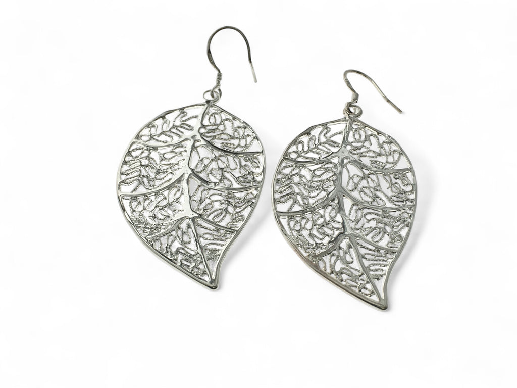 Leaf Large Sterling Silver Plated Earrings