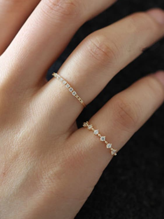 Elevate your everyday elegance with this delicate gold-plated sterling silver band ring, adorned with sparkling cubic zirconia stones. The dainty design offers a perfect balance of sophistication and versatility, making it ideal for stacking or wearing solo.