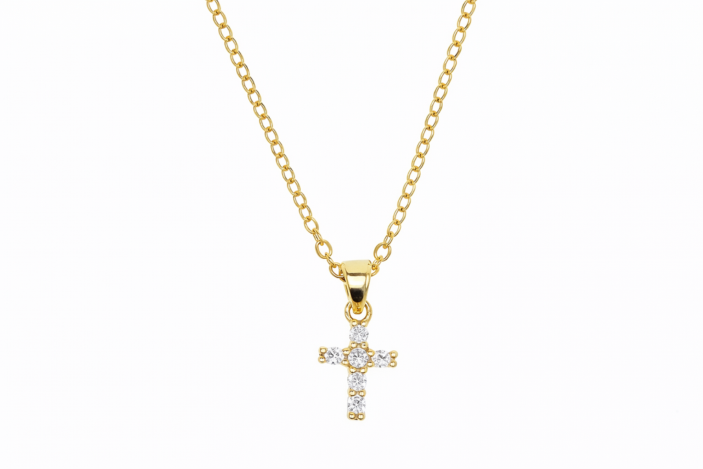 Cross Cubic Zirconia Gold Plated Sterling Silver Necklace
