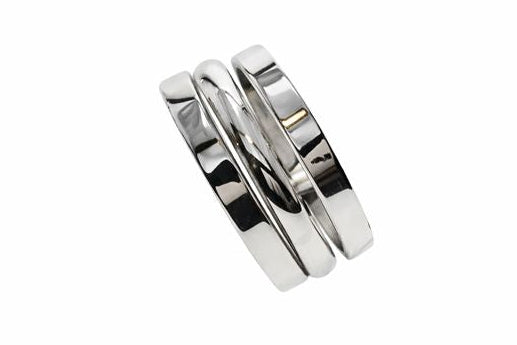 This distinctive ring offers a modern twist on classic silver jewelry. The three independent tiers create beautiful movement and dimension, making it a conversation piece that's perfect for those who appreciate innovative design and quality craftsmanship.