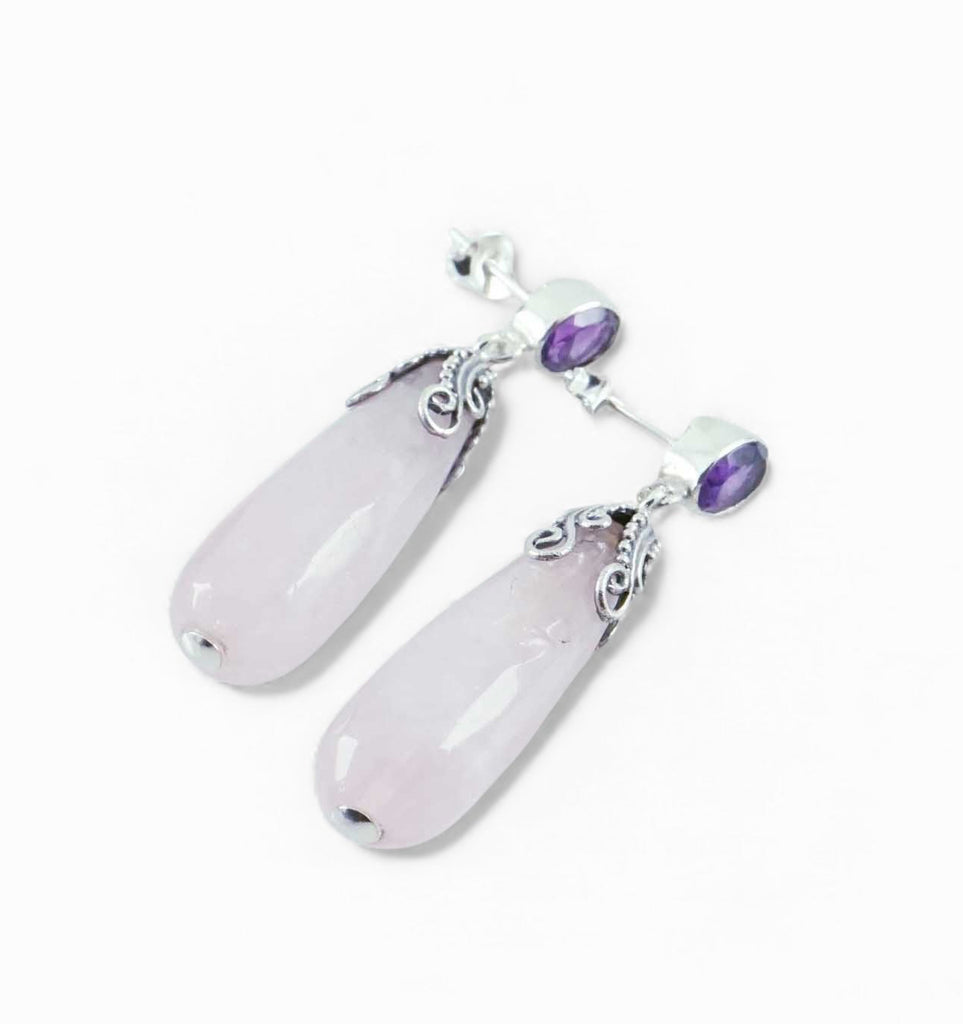 Rose Quartz with Amethyst Sterling Silver Earrings